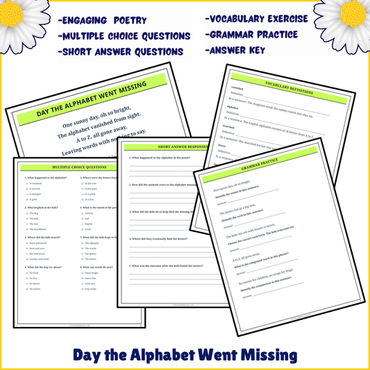 Day the Alphabet Went Missing | Poem Grammar Worksheet Printable Activity