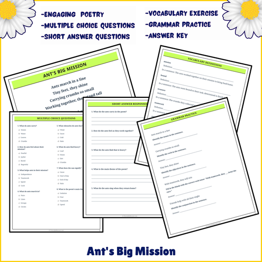 Ant's Big Mission | Poem Grammar Worksheet Printable Activity