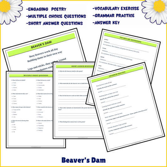 Beaver's Dam | Poem Grammar Worksheet Printable Activity