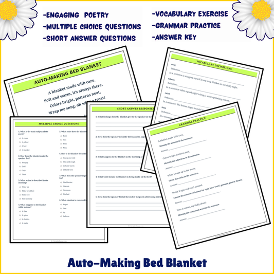 Auto-Making Bed Blanket | Poem Grammar Worksheet Printable Activity