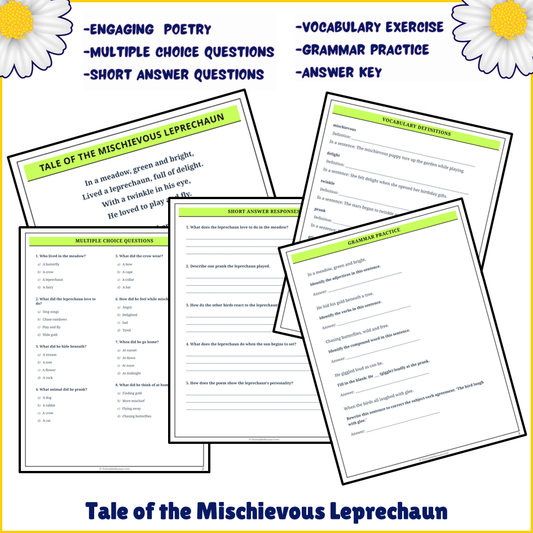 Tale of the Mischievous Leprechaun | Poem Grammar Worksheet Printable Activity