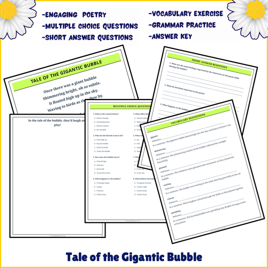 Tale of the Gigantic Bubble | Poem Grammar Worksheet Printable Activity