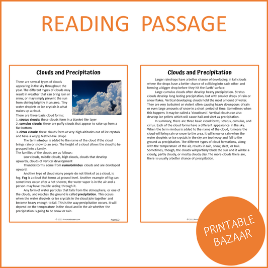 Clouds And Precipitation Reading Comprehension Passage and Questions | Printable PDF