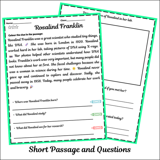 Rosalind Franklin | Short Reading Comprehension Creative Worksheet