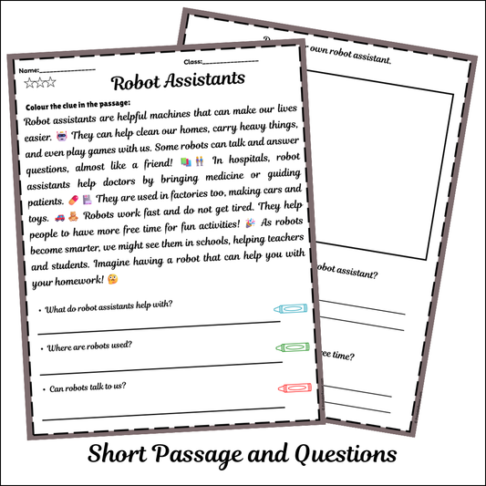 Robot Assistants | Short Reading Comprehension Creative Worksheet