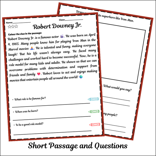 Robert Downey Jr. | Short Reading Comprehension Creative Worksheet