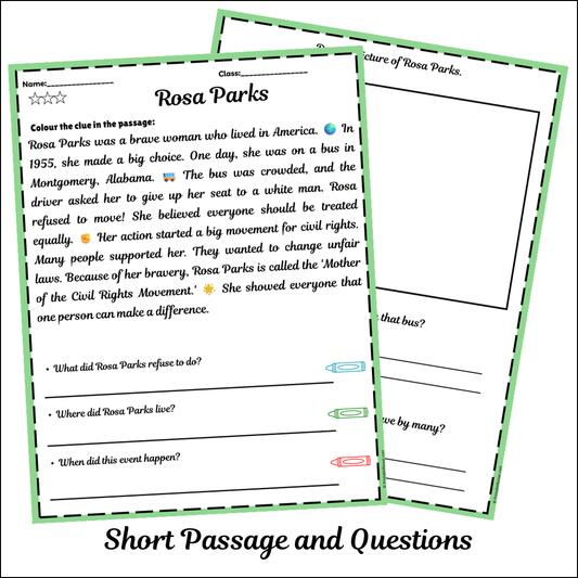 Rosa Parks | Short Reading Comprehension Creative Worksheet