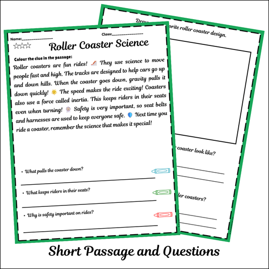 Roller Coaster Science | Short Reading Comprehension Creative Worksheet