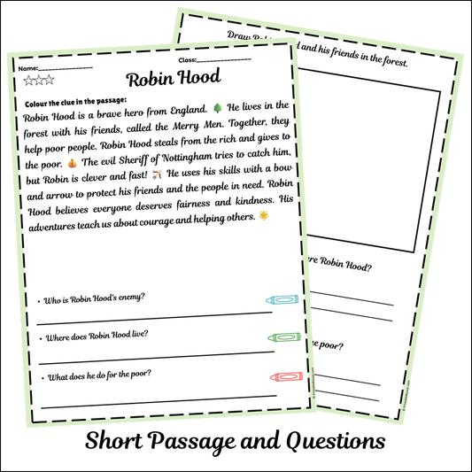 Robin Hood | Short Reading Comprehension Creative Worksheet