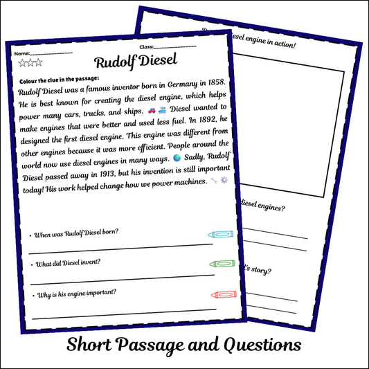 Rudolf Diesel | Short Reading Comprehension Creative Worksheet
