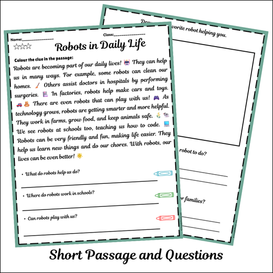 Robots in Daily Life | Short Reading Comprehension Creative Worksheet