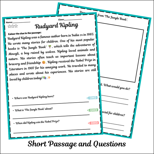 Rudyard Kipling | Short Reading Comprehension Creative Worksheet