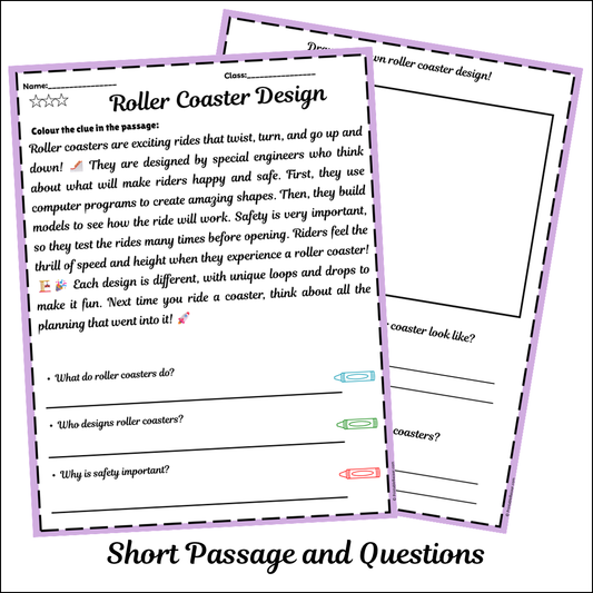 Roller Coaster Design | Short Reading Comprehension Creative Worksheet