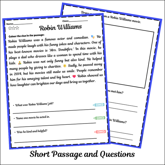 Robin Williams | Short Reading Comprehension Creative Worksheet