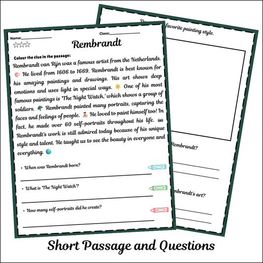 Rembrandt | Short Reading Comprehension Creative Worksheet
