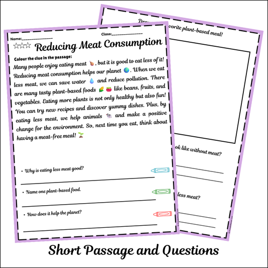 Reducing Meat Consumption | Short Reading Comprehension Creative Worksheet