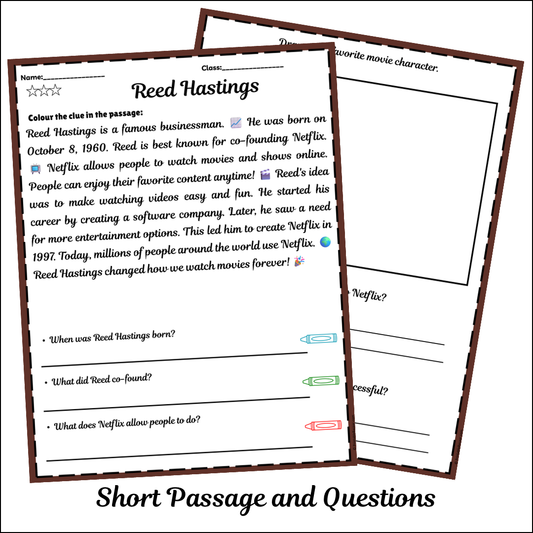 Reed Hastings | Short Reading Comprehension Creative Worksheet
