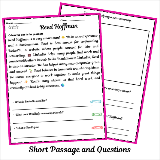 Reed Hoffman | Short Reading Comprehension Creative Worksheet