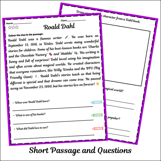 Roald Dahl | Short Reading Comprehension Creative Worksheet