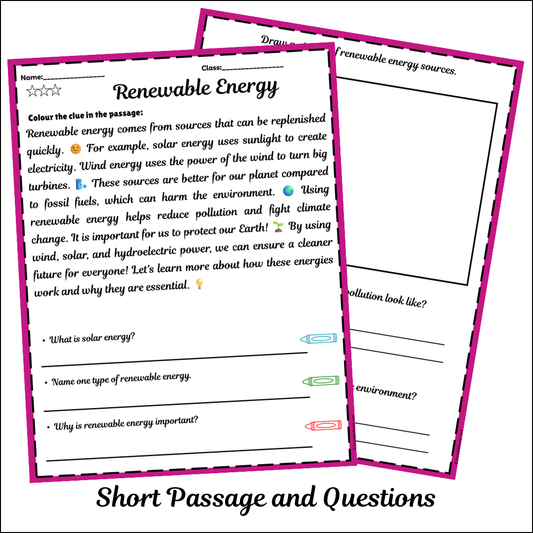 Renewable Energy | Short Reading Comprehension Creative Worksheet