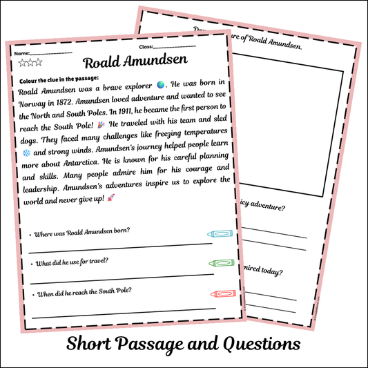 Roald Amundsen | Short Reading Comprehension Creative Worksheet