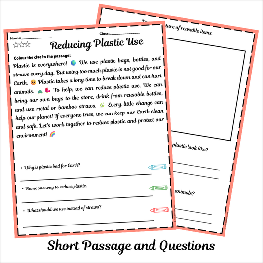 Reducing Plastic Use | Short Reading Comprehension Creative Worksheet