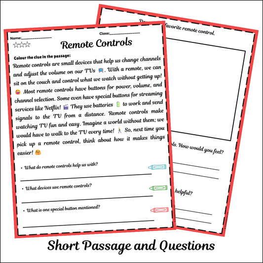 Remote Controls | Short Reading Comprehension Creative Worksheet