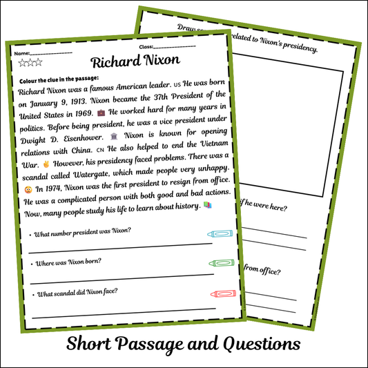 Richard Nixon | Short Reading Comprehension Creative Worksheet