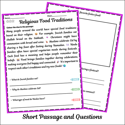 Religious Food Traditions | Short Reading Comprehension Creative Worksheet