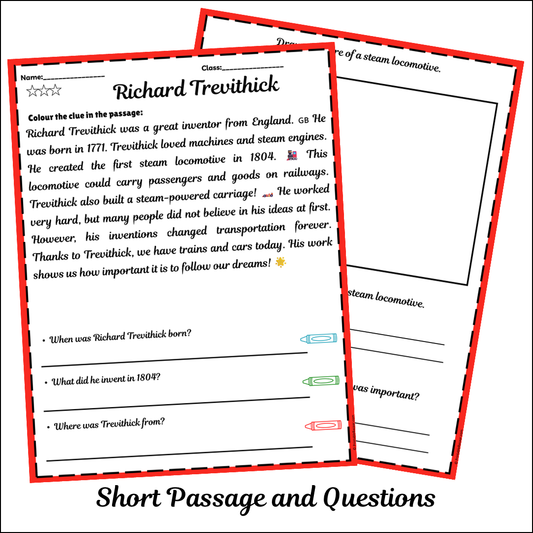 Richard Trevithick | Short Reading Comprehension Creative Worksheet