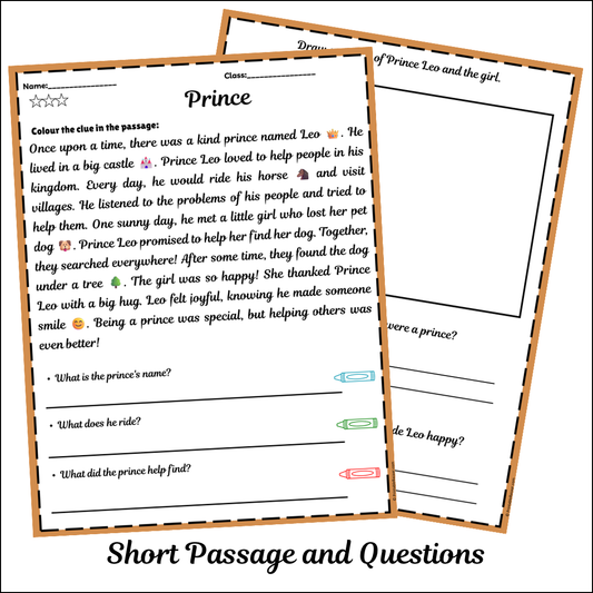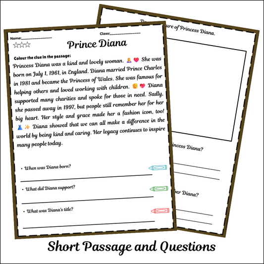 Prince Diana | Short Reading Comprehension Creative Worksheet