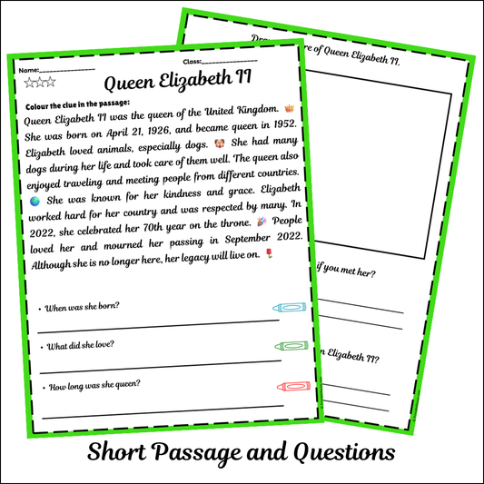 Queen Elizabeth II | Short Reading Comprehension Creative Worksheet