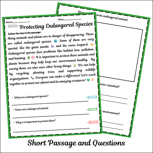 Protecting Endangered Species | Short Reading Comprehension Creative Worksheet