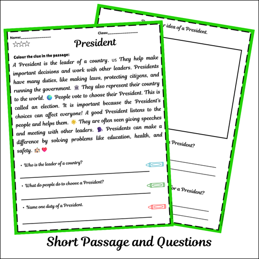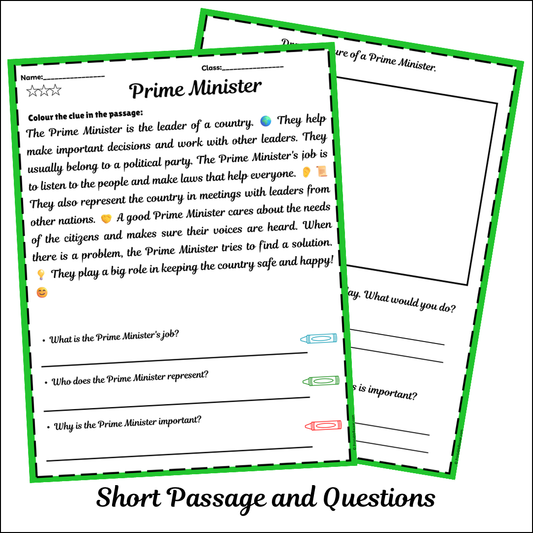 Prime Minister | Short Reading Comprehension Creative Worksheet