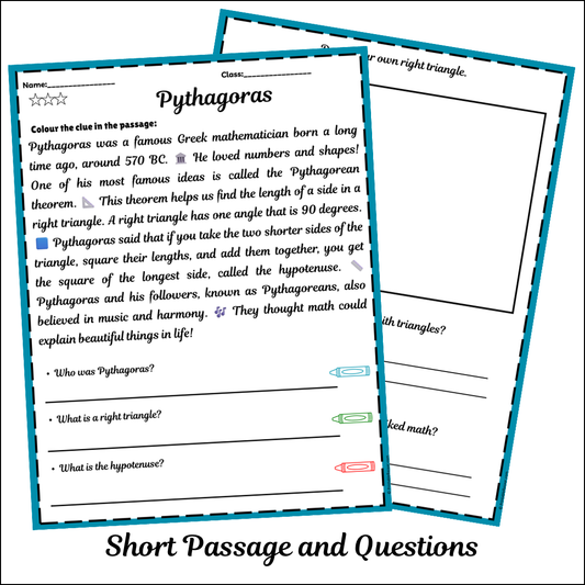 Pythagoras | Short Reading Comprehension Creative Worksheet