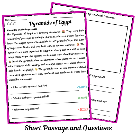 Pyramids of Egypt | Short Reading Comprehension Creative Worksheet