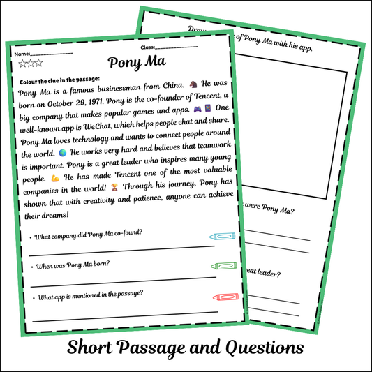 Pony Ma | Short Reading Comprehension Creative Worksheet