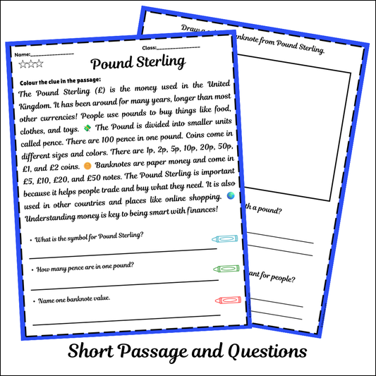 Pound Sterling | Short Reading Comprehension Creative Worksheet