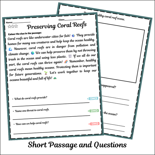 Preserving Coral Reefs | Short Reading Comprehension Creative Worksheet