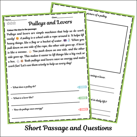 Pulleys and Levers | Short Reading Comprehension Creative Worksheet