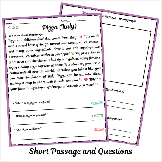 Pizza (Italy) | Short Reading Comprehension Creative Worksheet