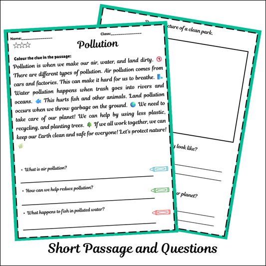 Pollution and Its Effects | Short Reading Comprehension Creative Worksheet