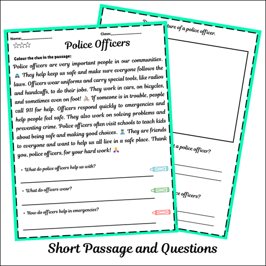 Police Officers | Short Reading Comprehension Creative Worksheet