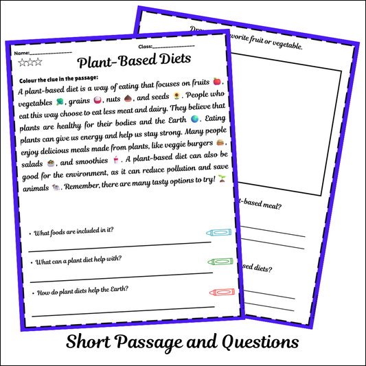 Plant-Based Diets | Short Reading Comprehension Creative Worksheet