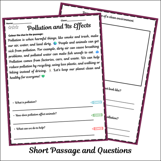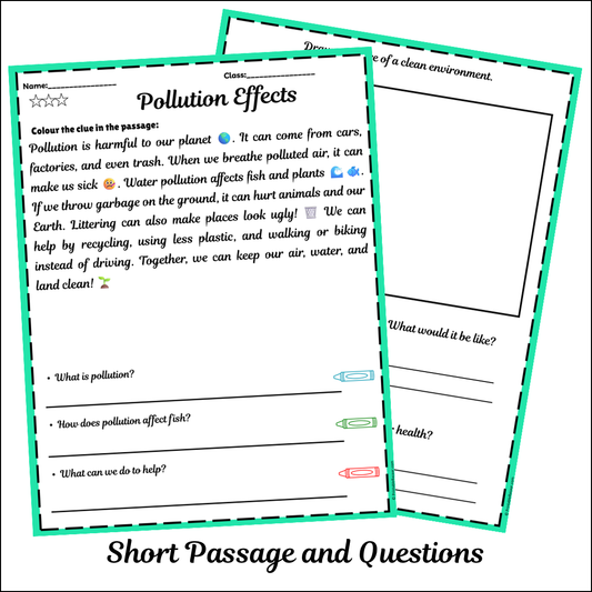Pollution Effects | Short Reading Comprehension Creative Worksheet