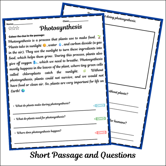 Photosynthesis | Short Reading Comprehension Creative Worksheet
