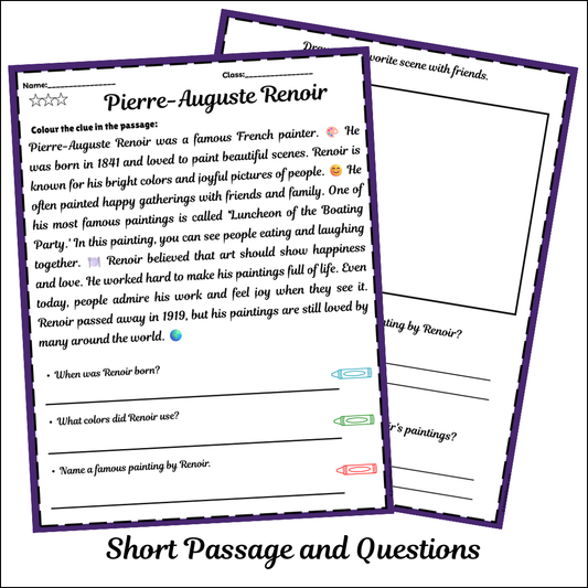 Pierre-Auguste Renoir | Short Reading Comprehension Creative Worksheet