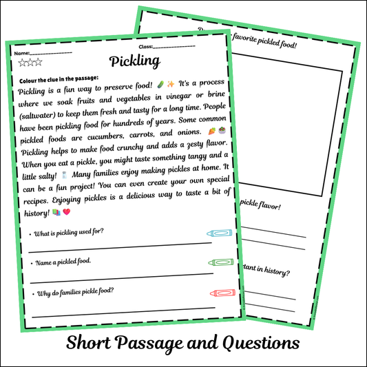 Pickling | Short Reading Comprehension Creative Worksheet