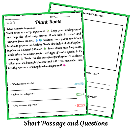 Plant Roots | Short Reading Comprehension Creative Worksheet