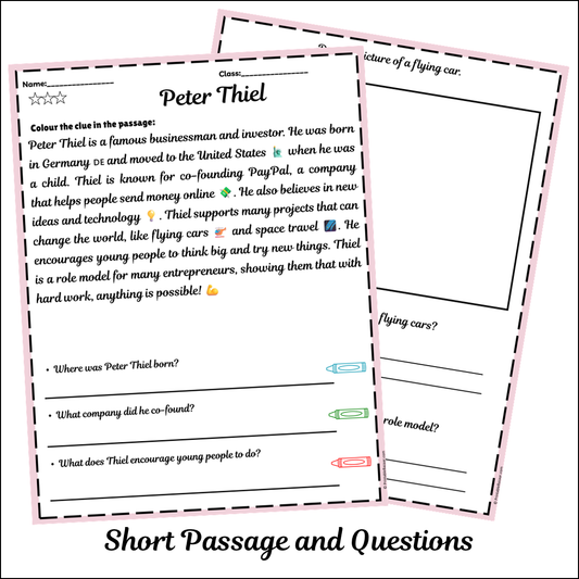 Peter Thiel | Short Reading Comprehension Creative Worksheet